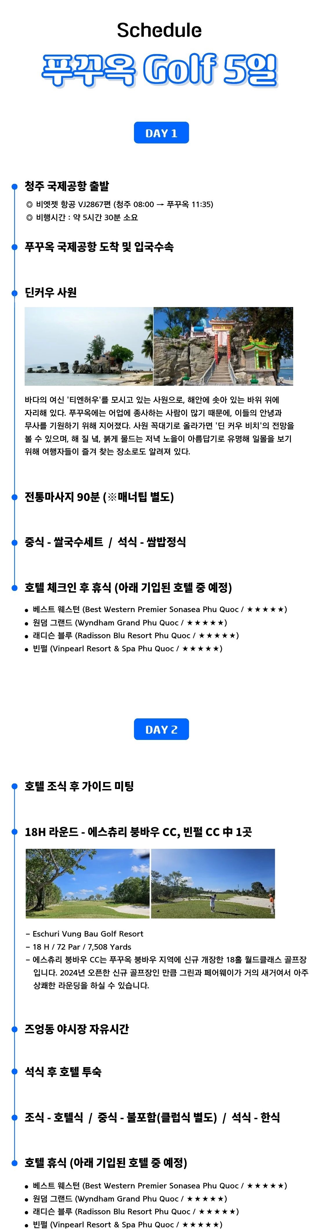 [고품격/노팁] 청주출발 푸꾸옥 골프 36H + 관광 5일 VJ